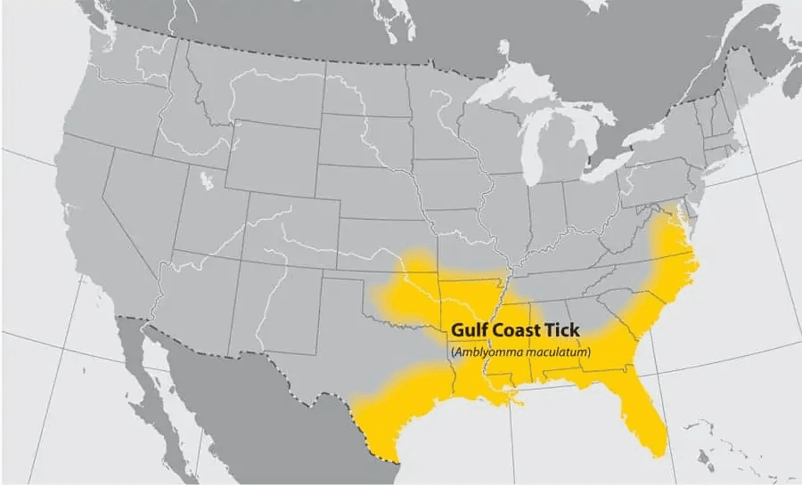 Gulf Coast ticks are primarily found in areas along the Atlantic Coast and the Gulf of Mexico, but reports of the tick have recently occurred further north, in states like Virginia, and west to Oklahoma and Kansas.